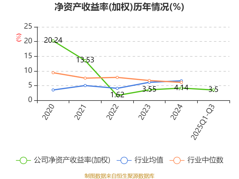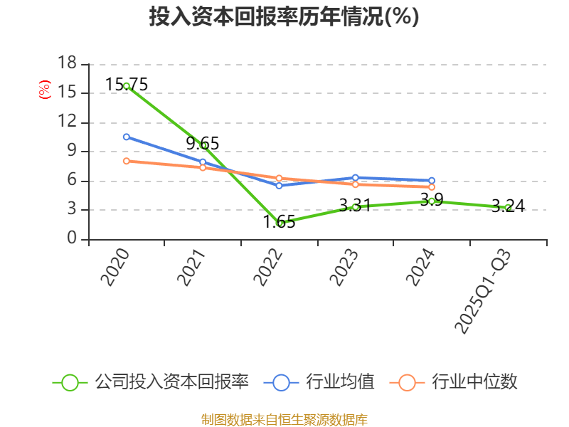 盈利能力方面, 2025年前三季度公司加权平均净资产收益率为3.5%,同比上升0.67个百分点。公司2025年前三季度投入资本回报率为3.24%,较上年同期上升0.48个百分点。