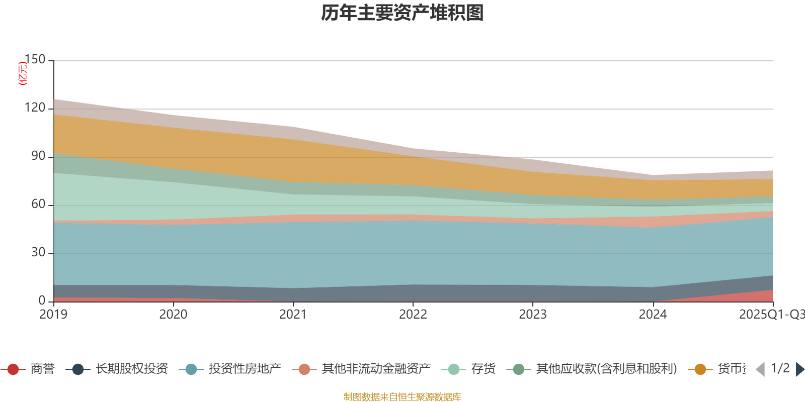 资产重大变化方面,截至2025年三季度末,公司商誉占公司总资产的8.79%,上年末为0;其他非流动金融资产较上年末减少46.83%,占公司总资产比重下降4.28个百分点;货币资金较上年末减少12.13%,占公司总资产比重下降2.34个百分点;投资性房地产较上年末减少1.5%,占公司总资产比重下降2.33个百分点。