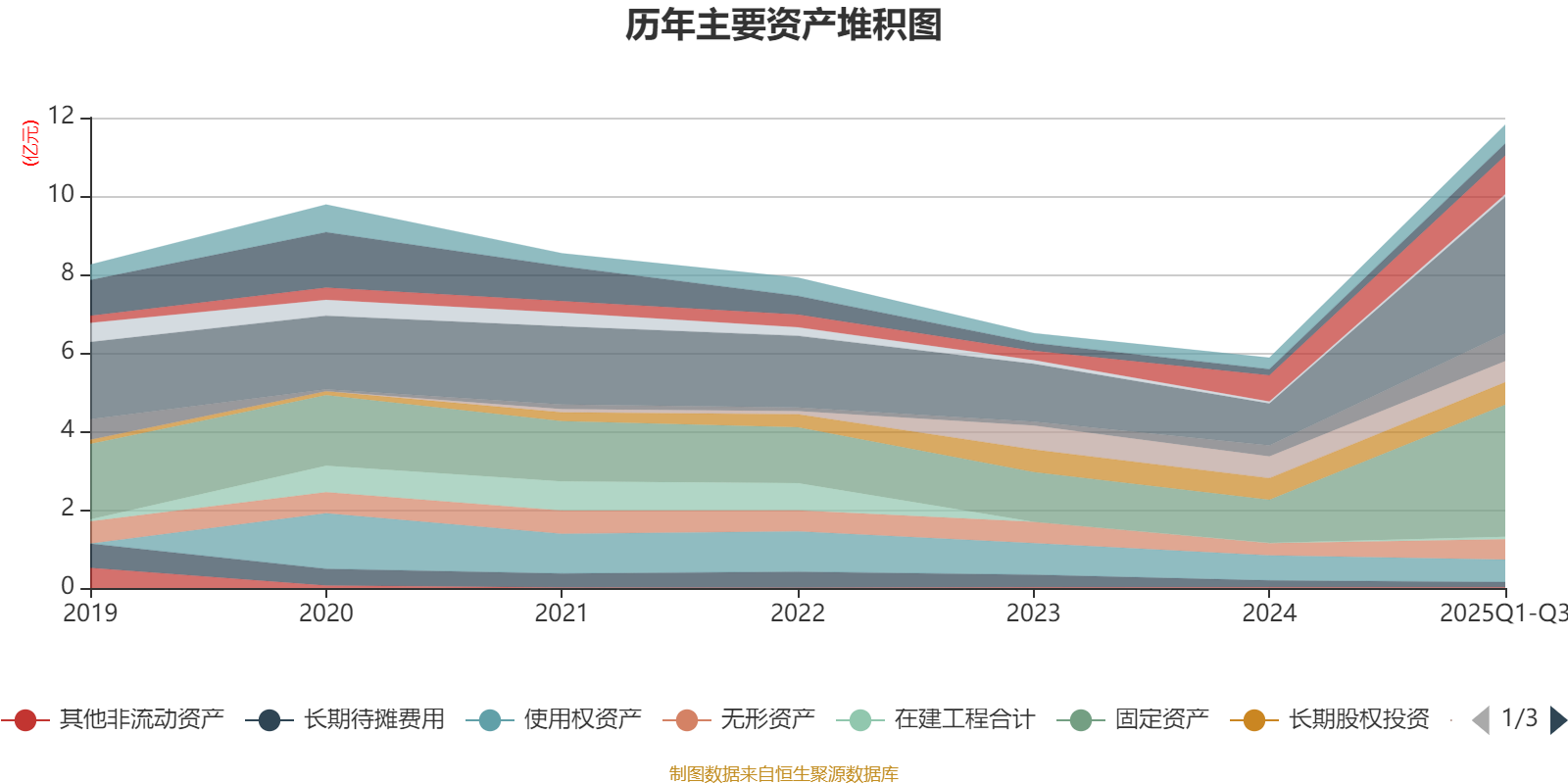 资产重大变化方面,截至2025年三季度末,公司存货较上年末增加226.31%,占公司总资产比重上升11.3个百分点;固定资产较上年末增加205.68%,占公司总资产比重上升9.73个百分点;使用权资产较上年末减少11.45%,占公司总资产比重下降6.12个百分点;投资性房地产较上年末减少1.92%,占公司总资产比重下降4.83个百分点。