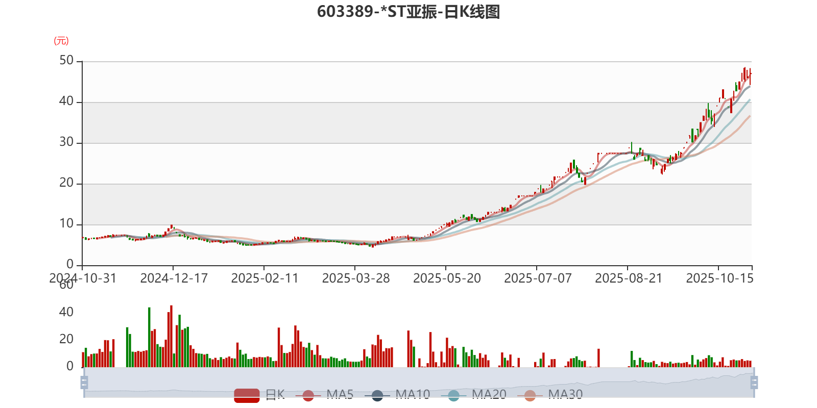 以10月30日收盘价计算,*ST亚振目前市盈率(TTM)约为-130倍,市净率(LF)约52.8倍,市销率(TTM)约59.15倍。