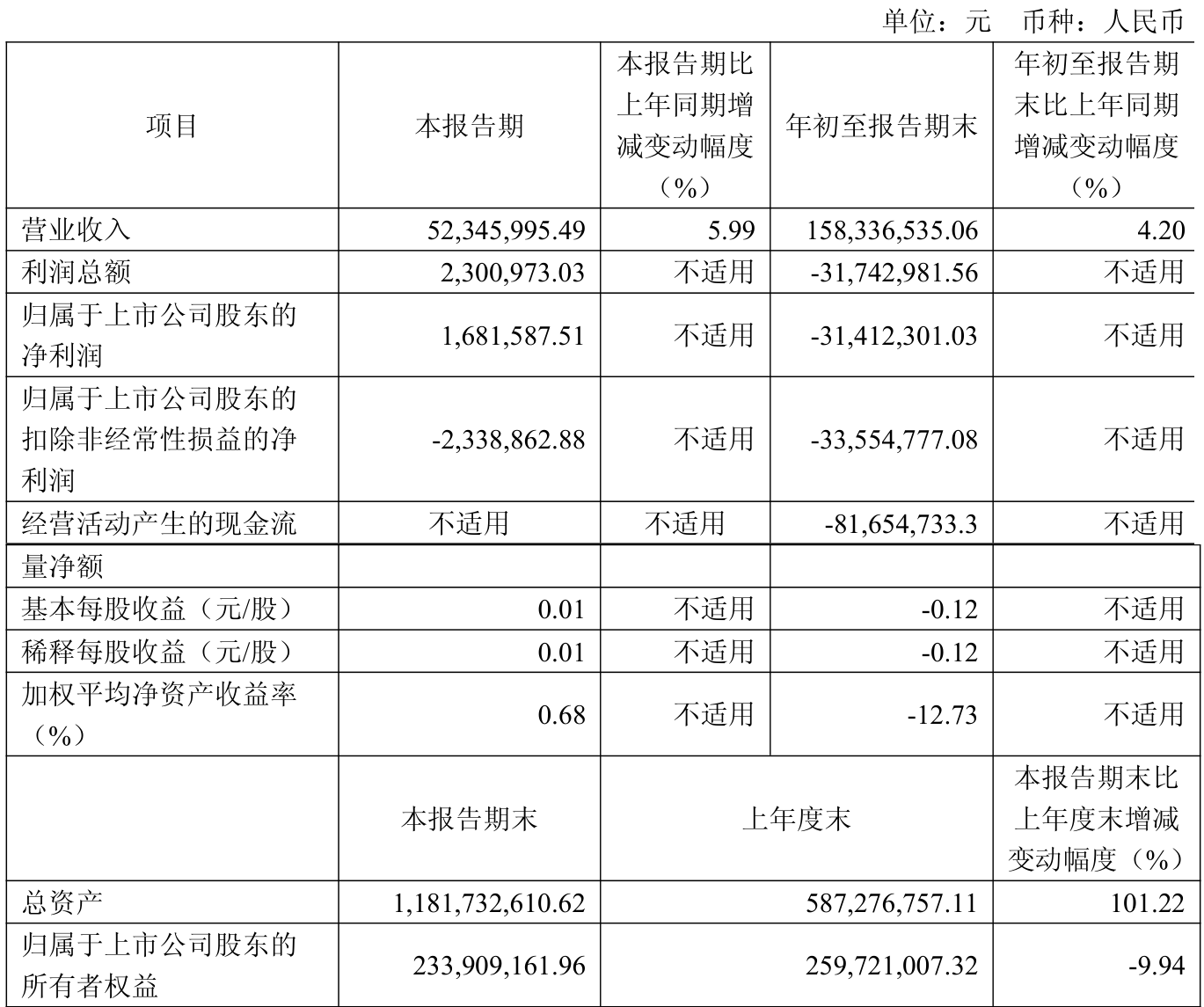 中证智能财讯 *ST亚振(603389)10月31日披露2025年第三季度报告。前三季度公司实现营业总收入1.58亿元,同比增长4.20%;归母净利润亏损3141.23万元,上年同期亏损5337.31万元;扣非净利润亏损3355.48万元,上年同期亏损5672.59万元;经营活动产生的现金流量净额为-8165.47万元,上年同期为-2917.7万元;报告期内,*ST亚振基本每股收益为-0.12元,加权平均净资产收益率为-12.73%。