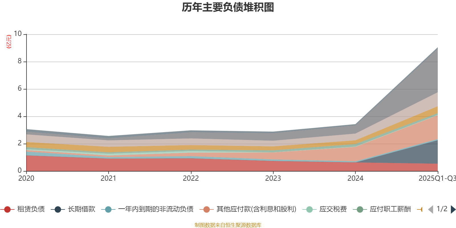 负债重大变化方面,截至2025年三季度末,公司短期借款较上年末增加428.83%,占公司总资产比重上升16.65个百分点;长期借款占公司总资产的14.54%,上年末为0;租赁负债较上年末减少14.56%,占公司总资产比重下降6.12个百分点;其他应付款(含利息和股利)较上年末增加65.47%,占公司总资产比重下降3.18个百分点。