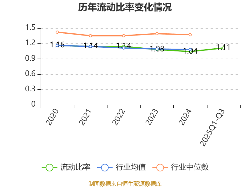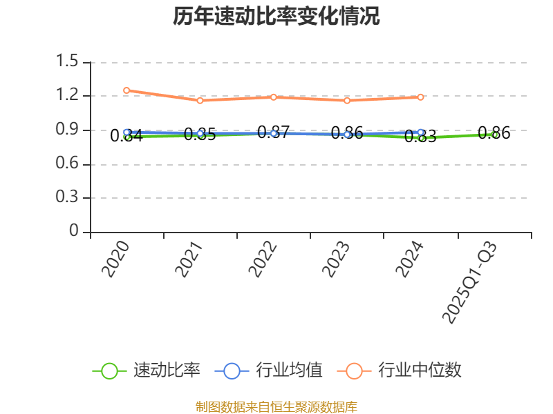 2025年前三季度,公司流动比率为1.11,速动比率为0.86。