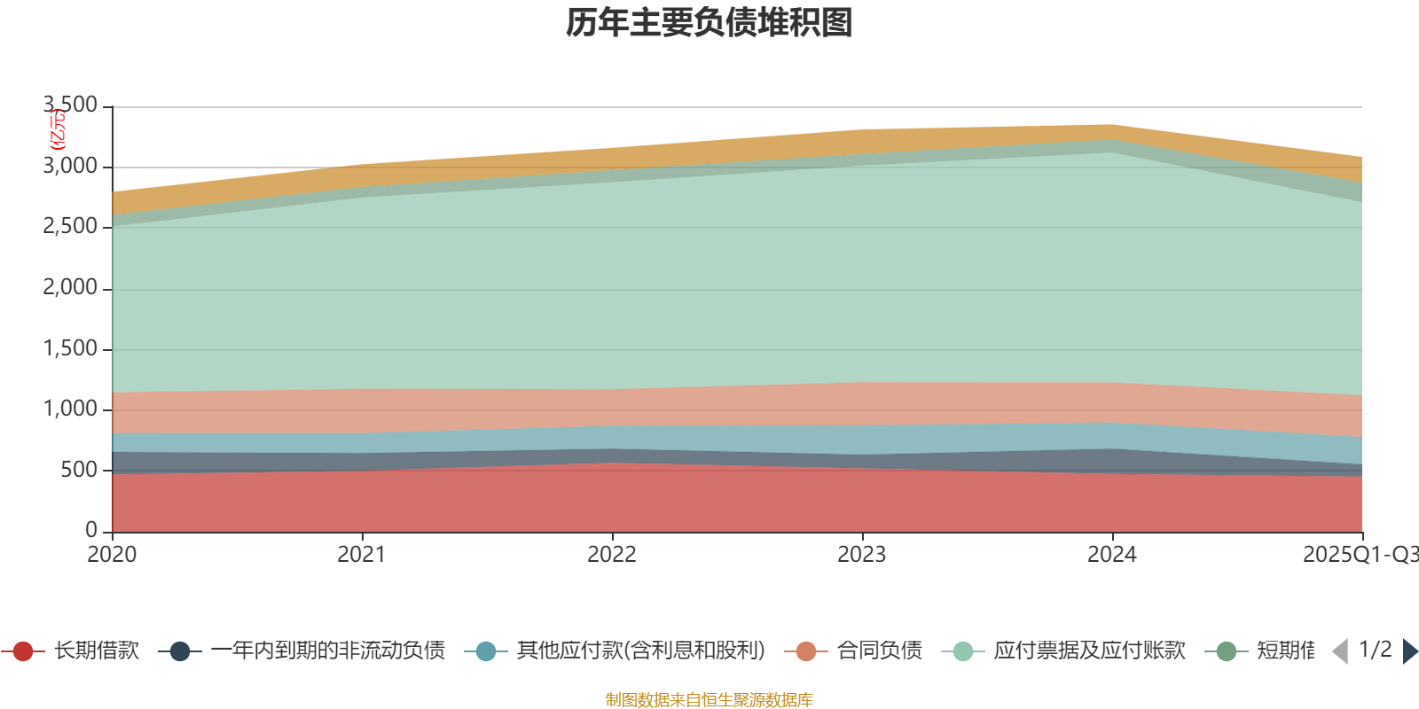 负债重大变化方面,截至2025年三季度末,公司应付票据及应付账款较上年末减少15.88%,占公司总资产比重下降4.74个百分点;应付债券较上年末增加453.58%,占公司总资产比重上升2.95个百分点;一年内到期的非流动负债较上年末减少51.23%,占公司总资产比重下降2.56个百分点;短期借款较上年末增加45.73%,占公司总资产比重上升1.61个百分点。