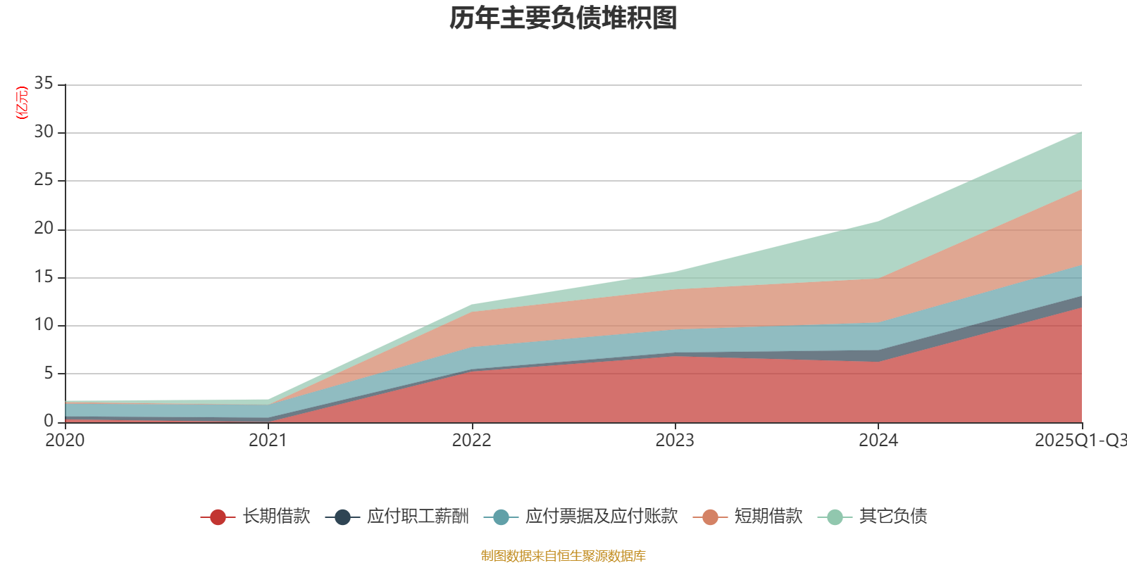 负债重大变化方面,截至2025年三季度末,公司长期借款较上年末增加89.88%,占公司总资产比重上升7.96个百分点;短期借款较上年末增加71.98%,占公司总资产比重上升4.23个百分点;其他应付款(含利息和股利)较上年末增加637.31%,占公司总资产比重上升2.03个百分点;递延所得税负债较上年末增加774.56%,占公司总资产比重上升1.23个百分点。