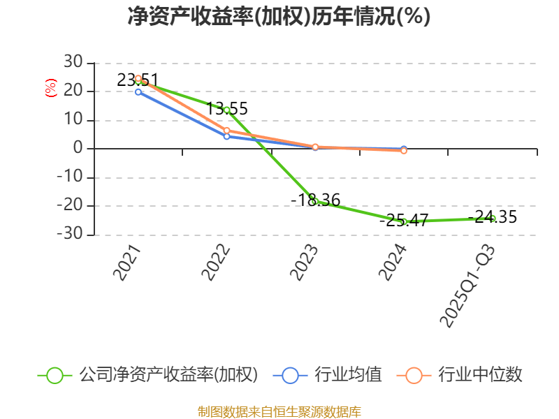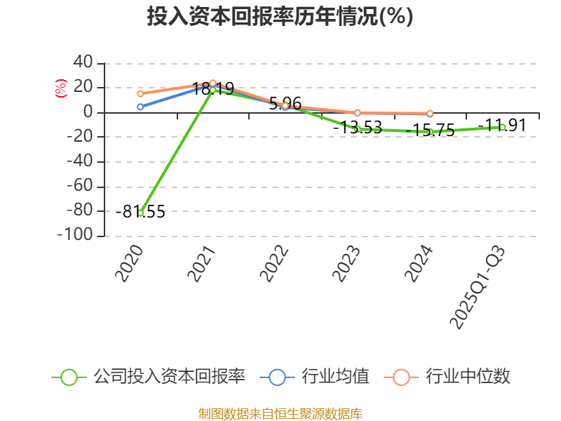盈利能力方面, 2025年前三季度公司加权平均净资产收益率为-24.35%,同比下降3.7个百分点。公司2025年前三季度投入资本回报率为-11.91%,较上年同期上升1.04个百分点。