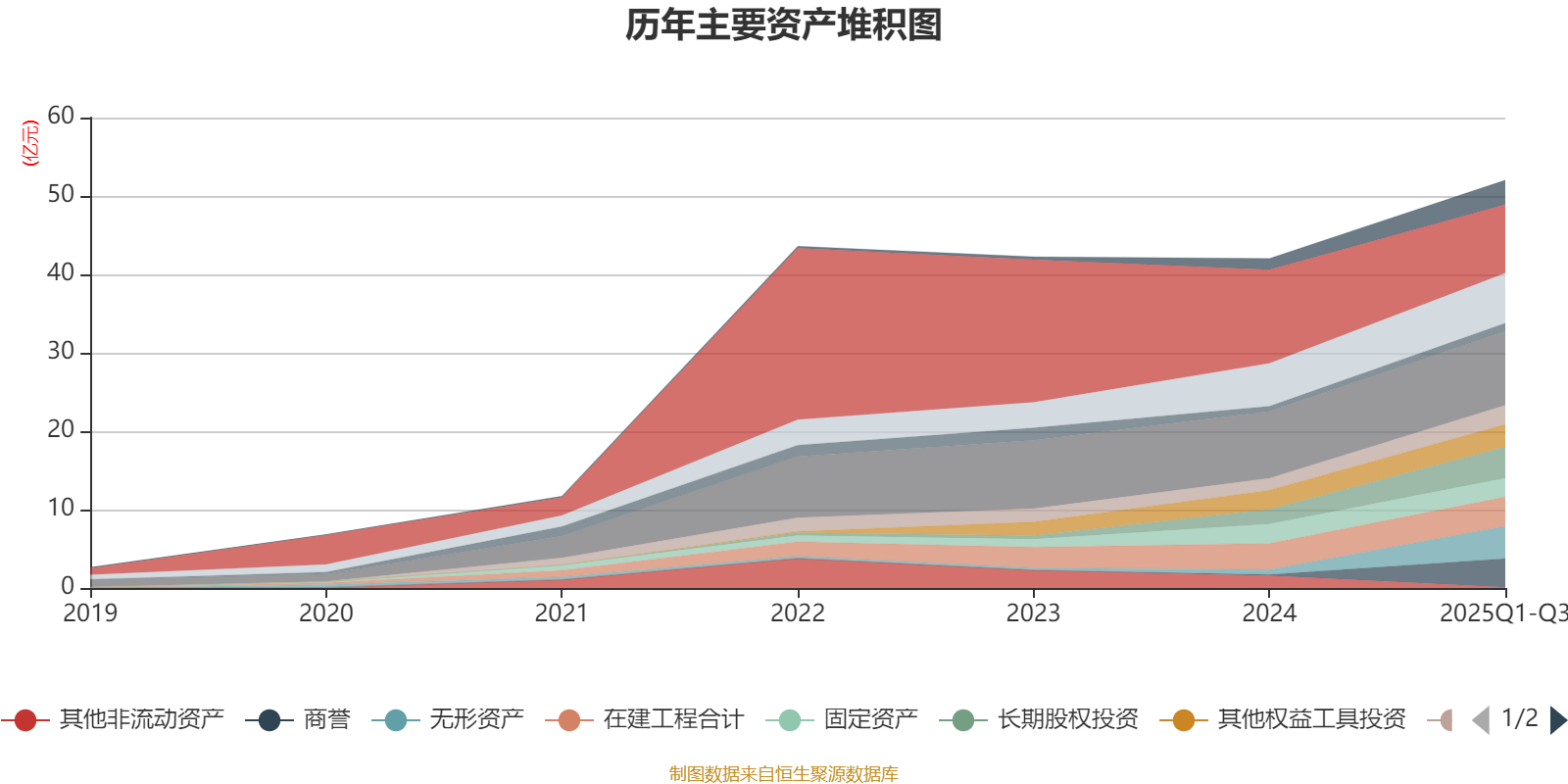 资产重大变化方面,截至2025年三季度末,公司货币资金较上年末减少26.69%,占公司总资产比重下降11.57个百分点;商誉较上年末增加2457.96%,占公司总资产比重上升6.67个百分点;无形资产较上年末增加553.43%,占公司总资产比重上升6.45个百分点;其他非流动资产较上年末减少93.95%,占公司总资产比重下降3.55个百分点。