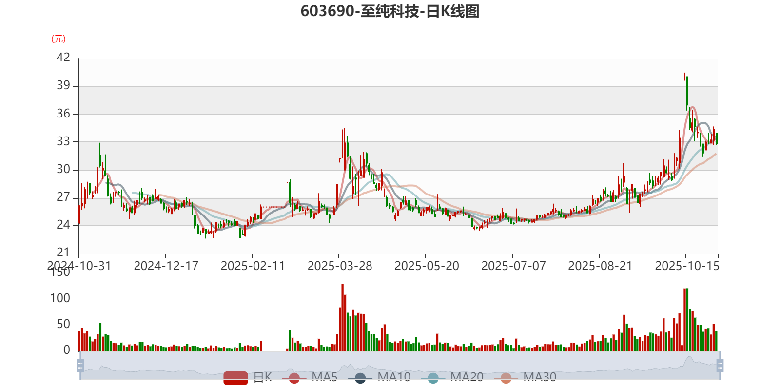 以10月30日收盘价计算,至纯科技目前市盈率(TTM)约为-149.03倍,市净率(LF)约2.51倍,市销率(TTM)约3.78倍。