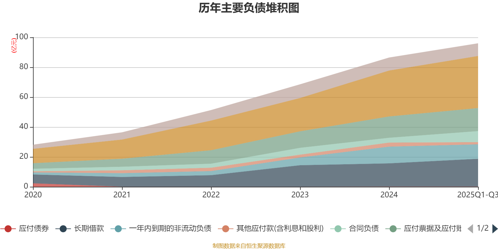 负债重大变化方面,截至2025年三季度末,公司合同负债较上年末增加126.54%,占公司总资产比重上升2.6个百分点;一年内到期的非流动负债较上年末减少13.36%,占公司总资产比重下降1.69个百分点;长期借款较上年末增加19.5%,占公司总资产比重上升1.1个百分点;其他应付款(含利息和股利)较上年末减少45.74%,占公司总资产比重下降0.99个百分点。