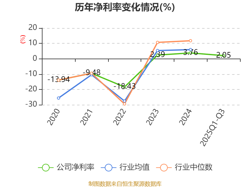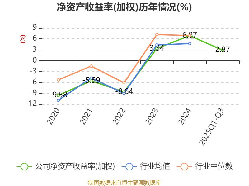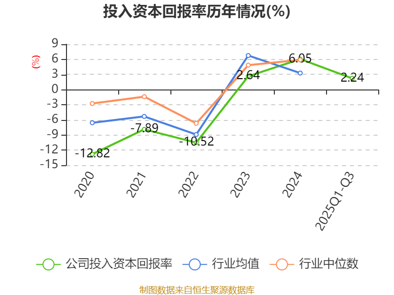 盈利能力方面, 2025年前三季度公司加权平均净资产收益率为2.87%,同比下降3.34个百分点。公司2025年前三季度投入资本回报率为2.24%,较上年同期下降3.97个百分点。