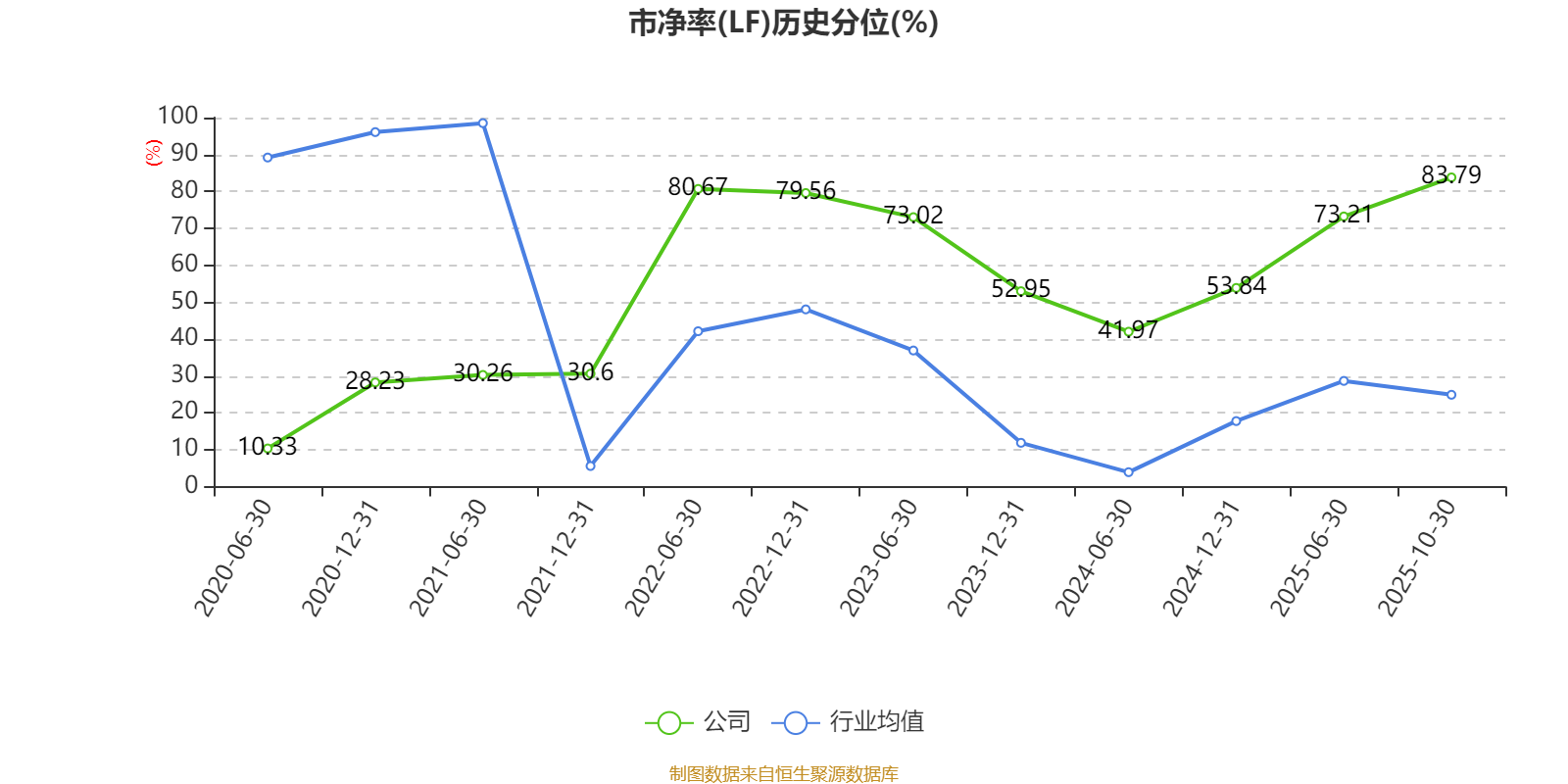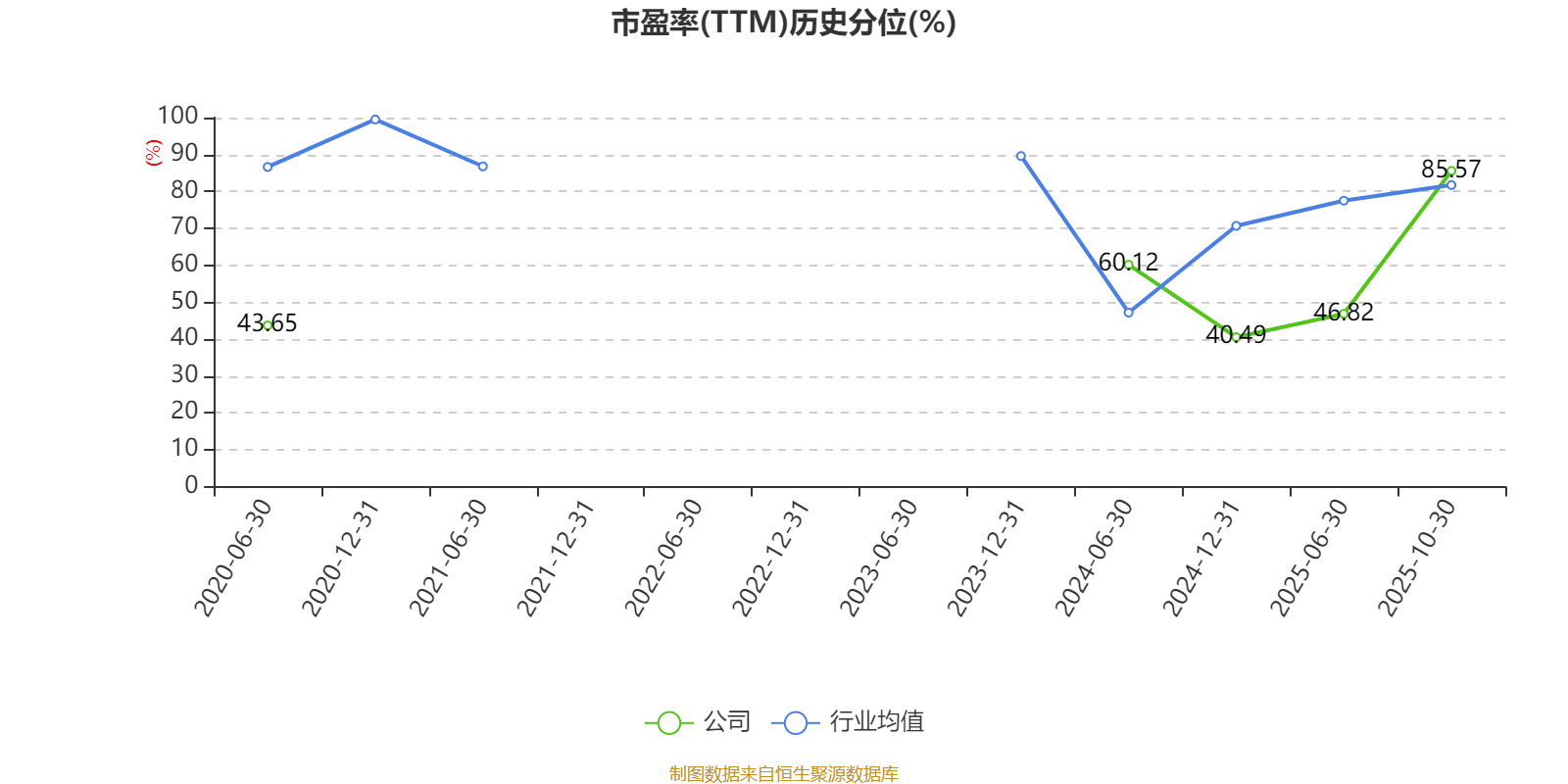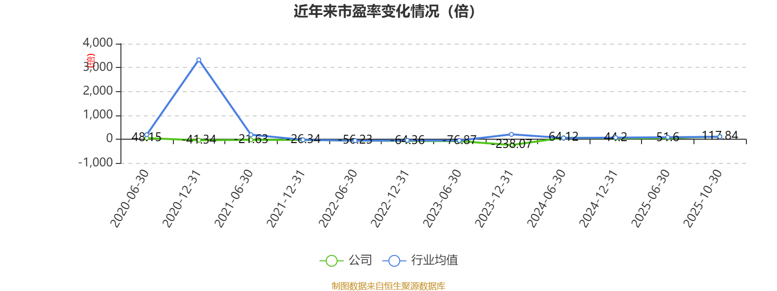 市盈率、市净率为负时,不显示当期分位数,会导致折线图中断。