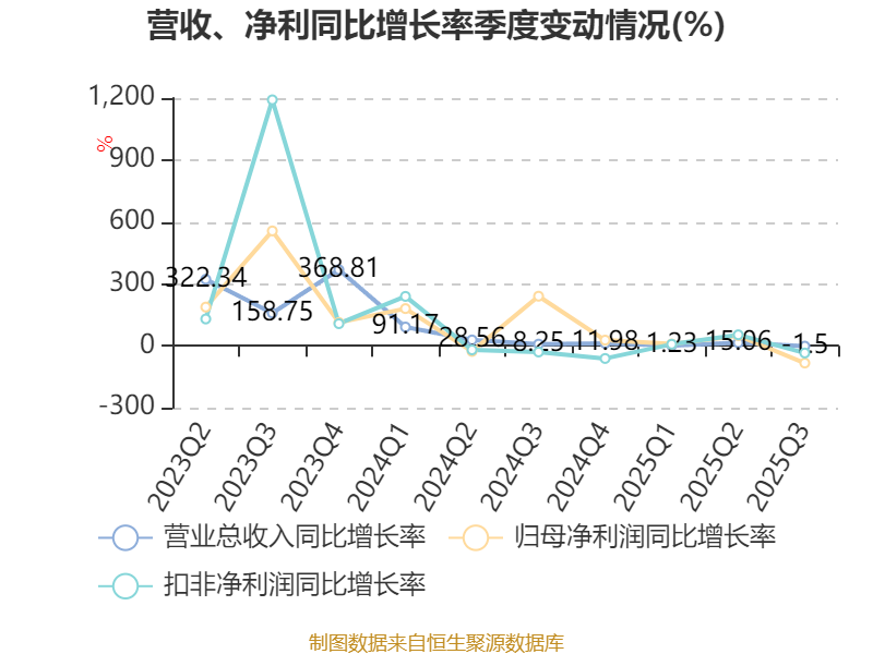资产重大变化方面,截至2025年三季度末,公司其他流动资产较上年末减少90.36%,占公司总资产比重下降5.84个百分点;货币资金较上年末增加12.07%,占公司总资产比重上升3.36个百分点;预付款项较上年末增加71.2%,占公司总资产比重上升1.72个百分点;在建工程合计较上年末增加661.56%,占公司总资产比重上升1.34个百分点。