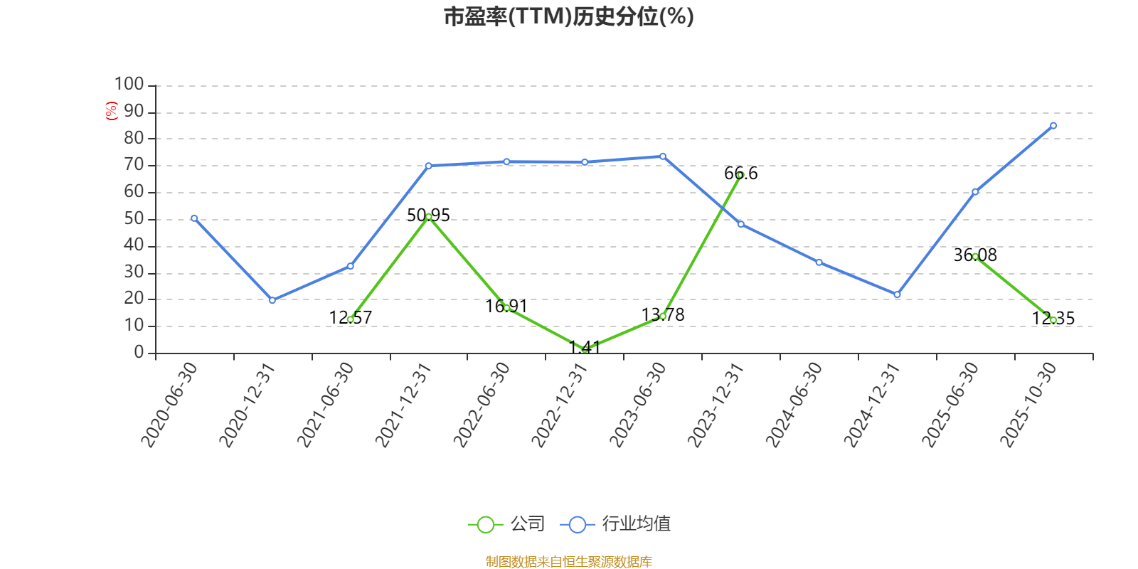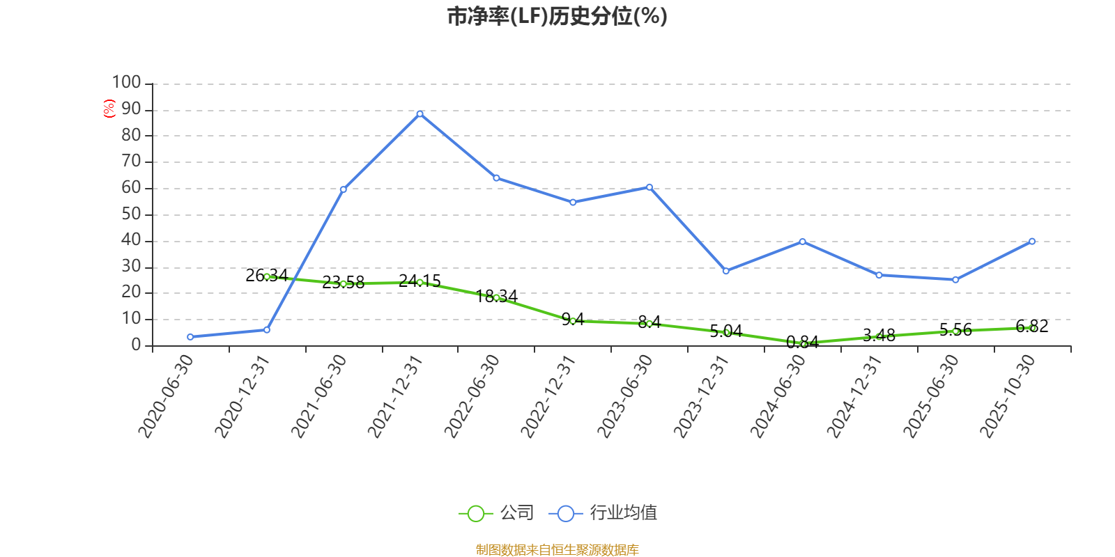 市盈率、市净率为负时,不显示当期分位数,会导致折线图中断。