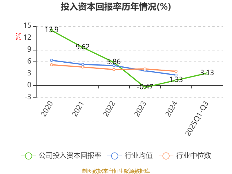 盈利能力方面, 2025年前三季度公司加权平均净资产收益率为3.62%,同比上升4.45个百分点。公司2025年前三季度投入资本回报率为3.13%,较上年同期上升0.68个百分点。