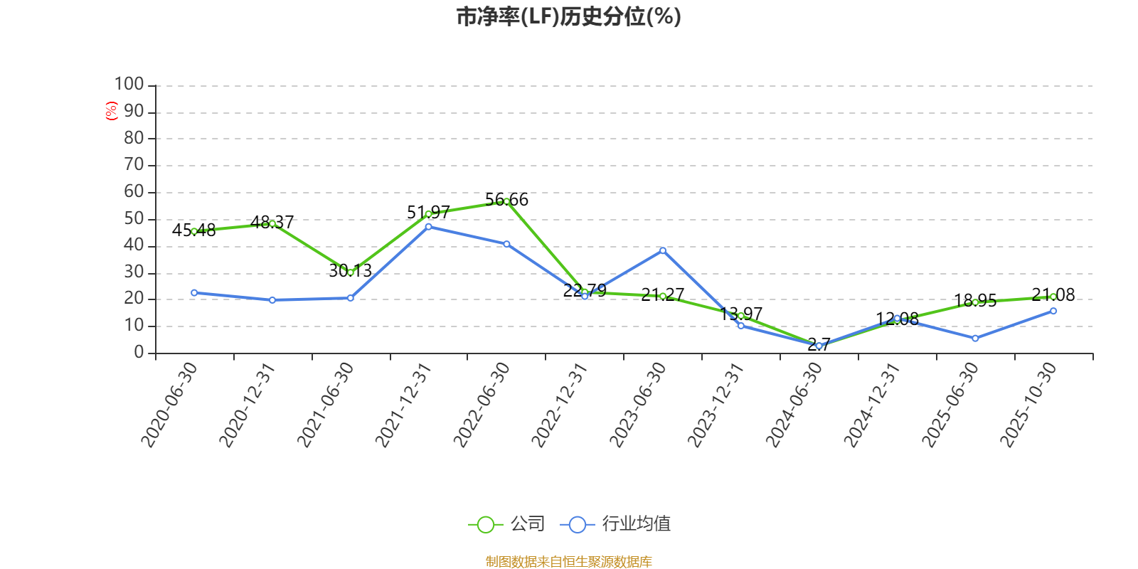 市盈率、市净率为负时,不显示当期分位数,会导致折线图中断。
