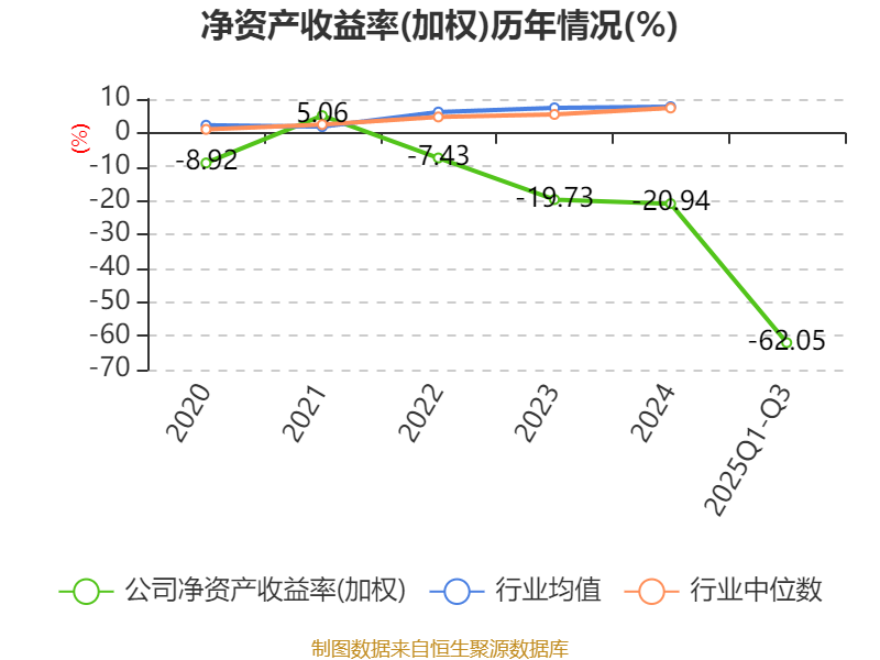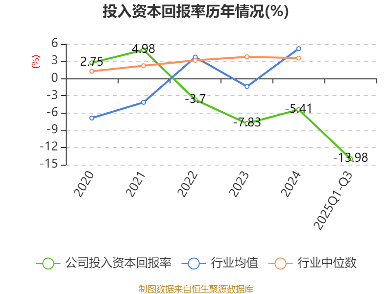 盈利能力方面, 2025年前三季度公司加权平均净资产收益率为-62.05%,同比下降42.01个百分点。公司2025年前三季度投入资本回报率为-13.98%,较上年同期下降8.17个百分点。