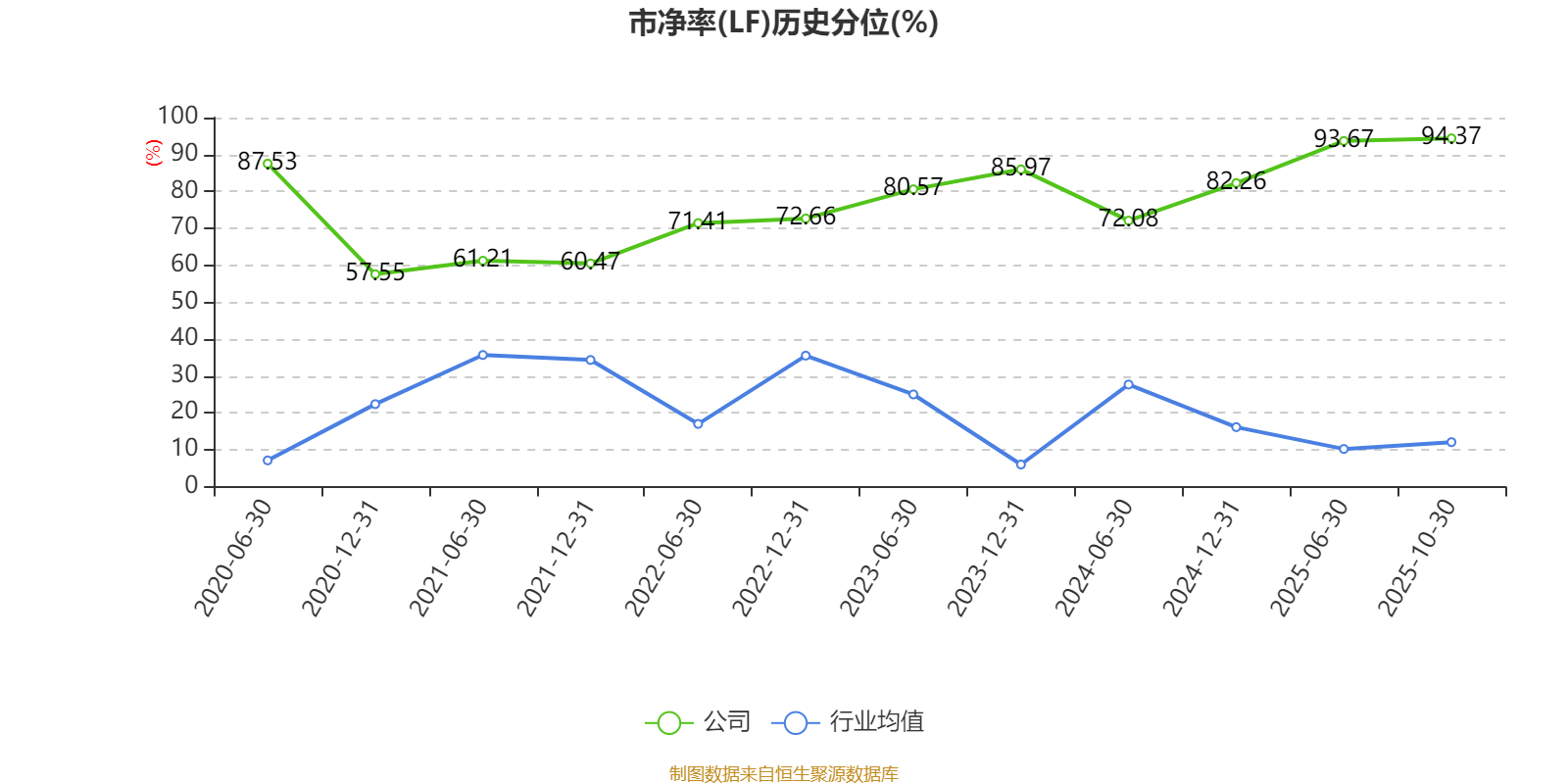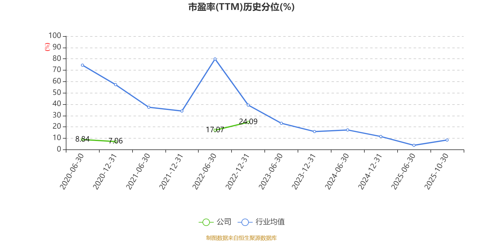 市盈率、市净率为负时,不显示当期分位数,会导致折线图中断。