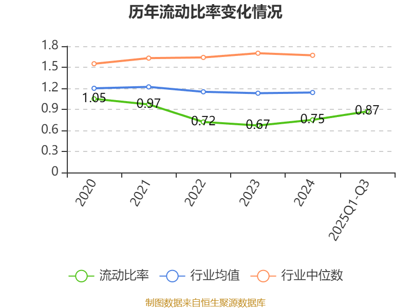 2025年前三季度,公司流动比率为0.87,速动比率为0.56。