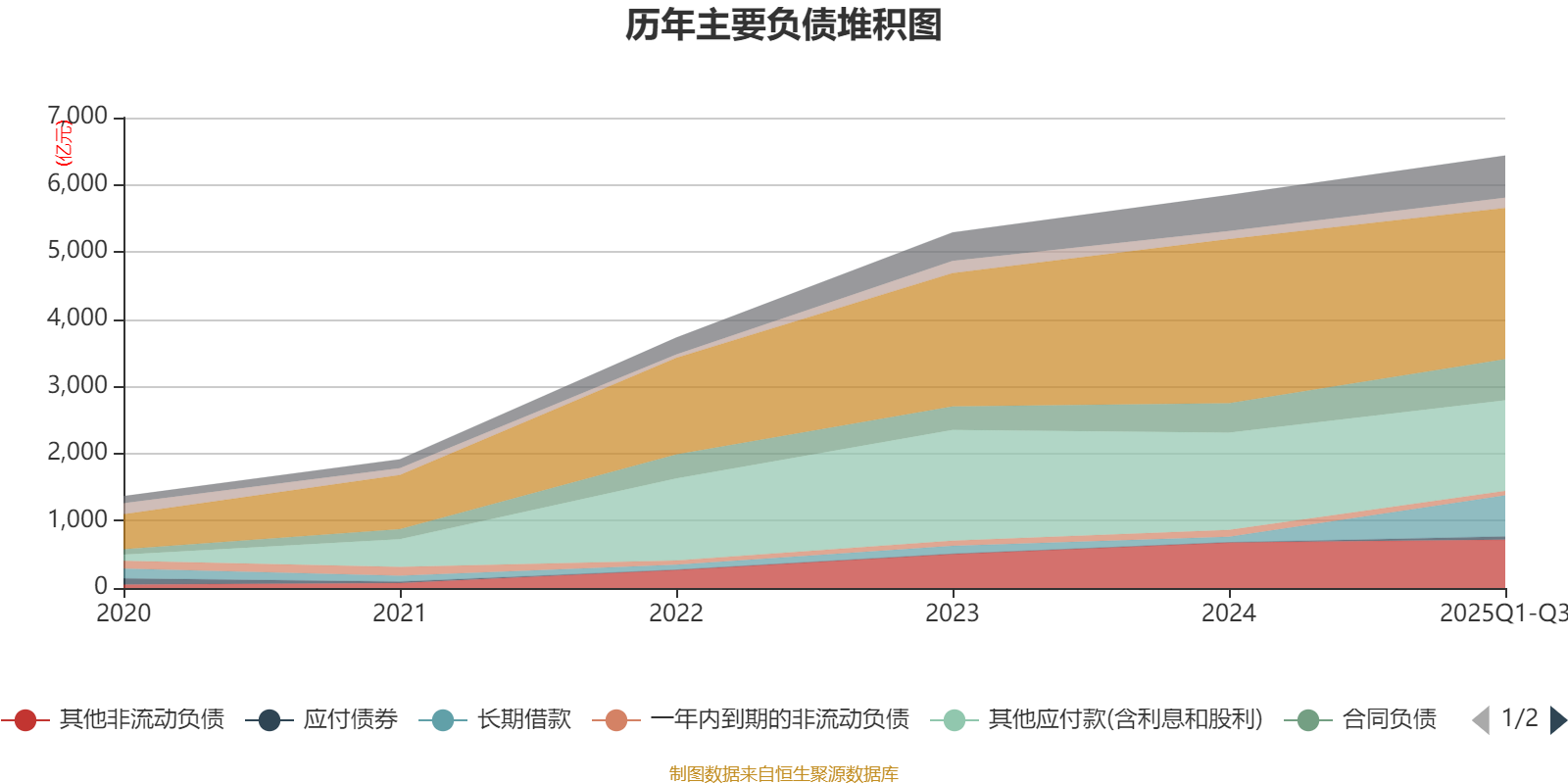 负债重大变化方面,截至2025年三季度末,公司应付票据及应付账款较上年末减少7.79%,占公司总资产比重下降6.2个百分点;长期借款较上年末增加641.1%,占公司总资产比重上升5.73个百分点;其他应付款(含利息和股利)较上年末减少7.03%,占公司总资产比重下降3.56个百分点;其他流动负债较上年末增加300.18%,占公司总资产比重上升1.71个百分点。