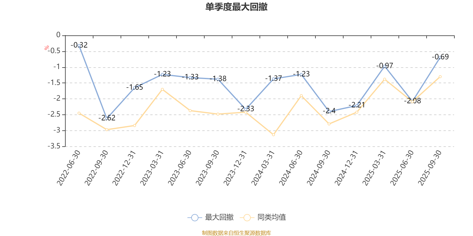 截至10月29日,基金近三年最大回撤为3.86%,同类可比基金排名107/534。单季度最大回撤出现在2022年三季度,为2.62%。