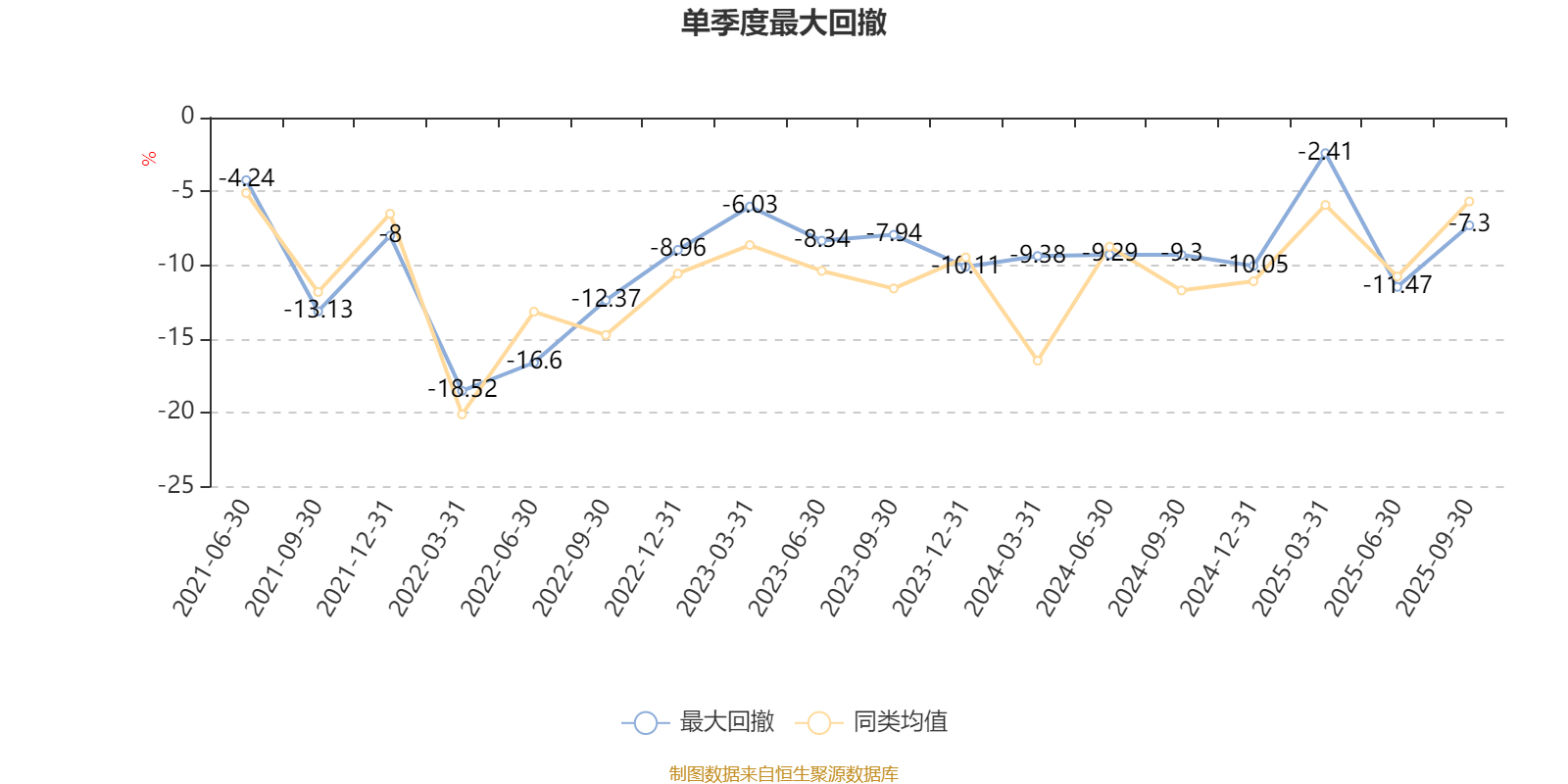 截至10月29日,基金近三年最大回撤为28.96%,同类可比基金排名104/513。单季度最大回撤出现在2022年一季度,为18.52%。
