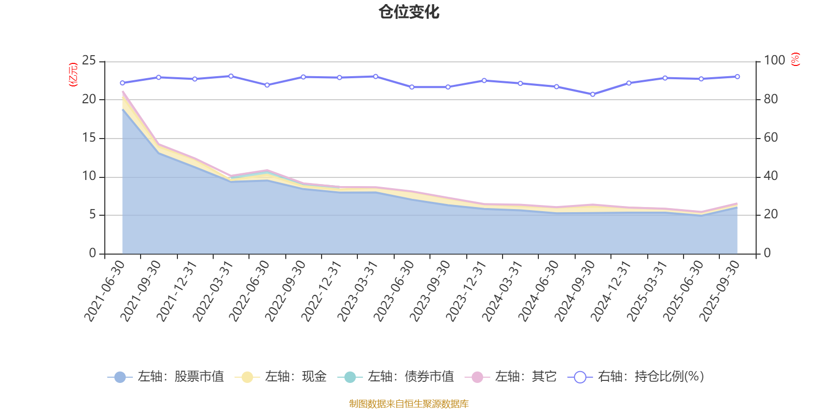 据定期报告数据统计,近三年平均股票仓位为89.04%,同类平均为85.66%。2022年一季度末基金达到92.34%的最高仓位,2024年三季度末最低,为82.87%。