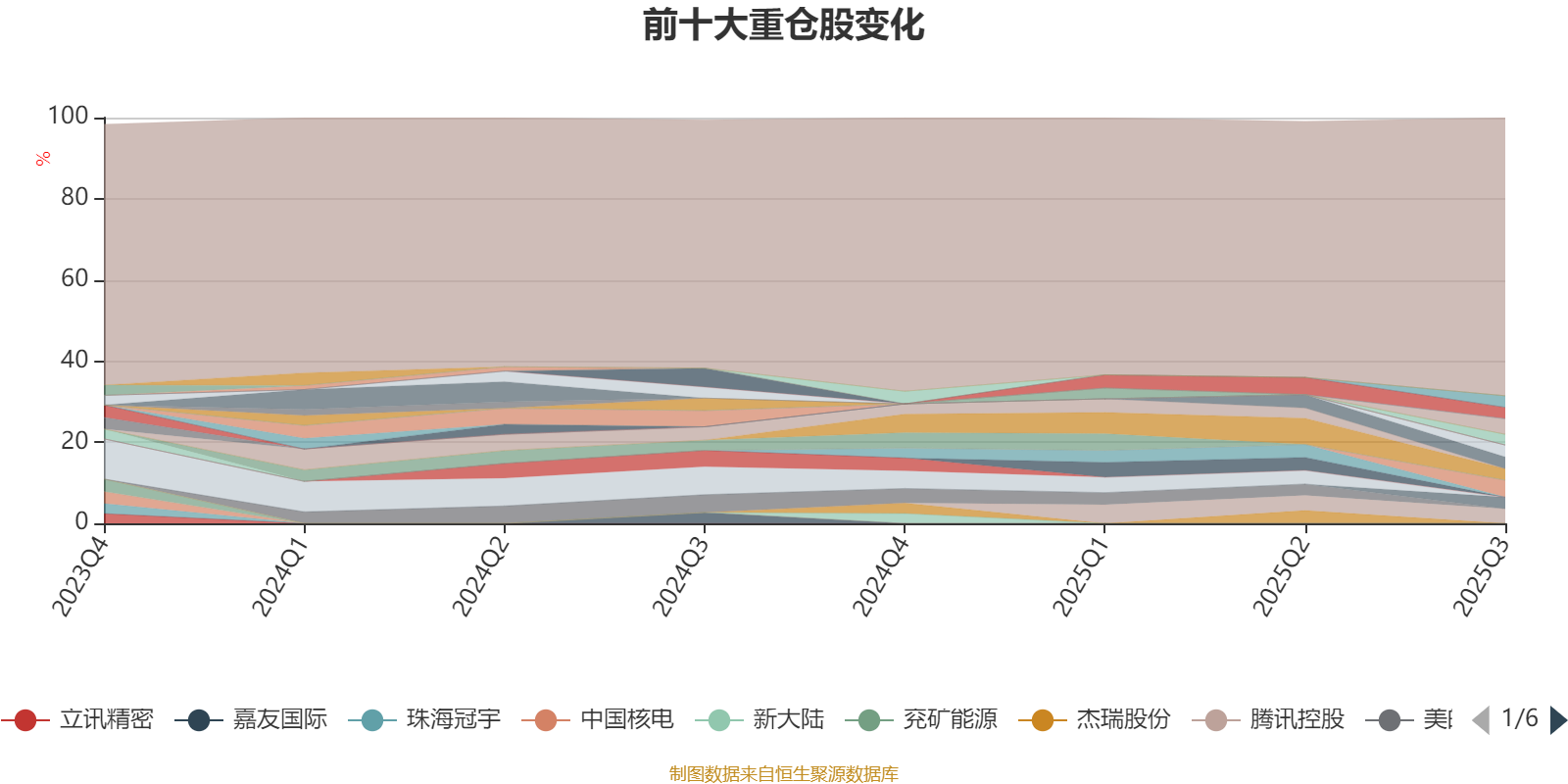 截至2025年三季度末,基金十大重仓股分别是生益科技、中芯国际、腾讯控股、寒武纪、药明康德、拓荆科技、ST华通、渝农商行、阿里巴巴-W、海光信息。