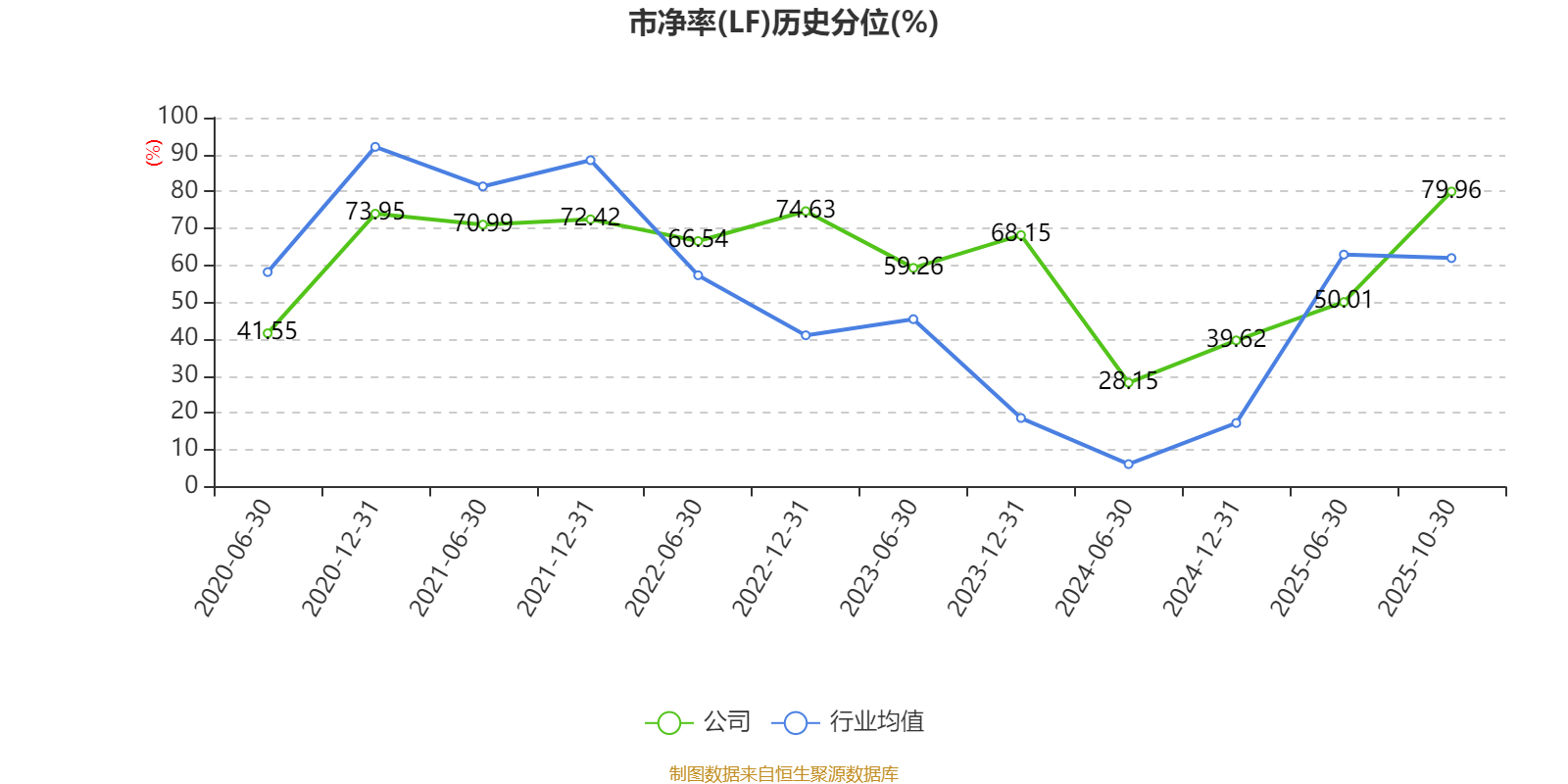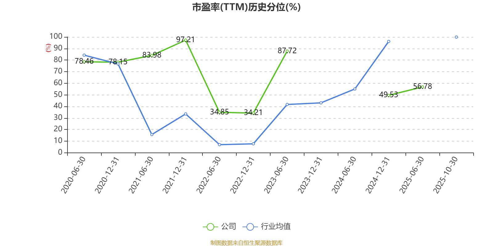 市盈率、市净率为负时,不显示当期分位数,会导致折线图中断。