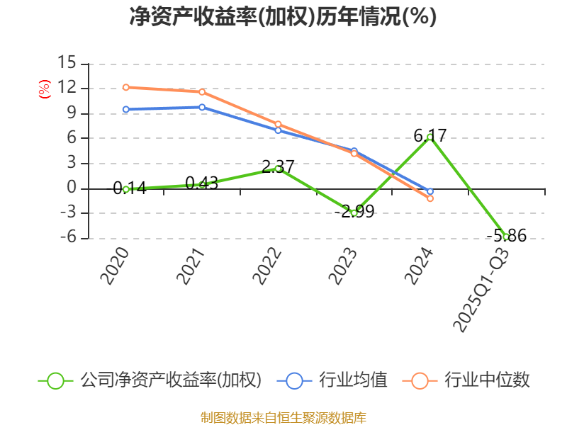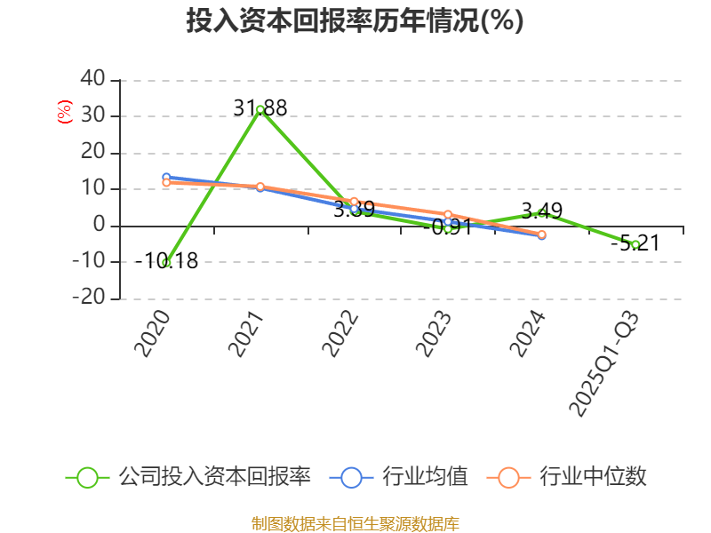 盈利能力方面, 2025年前三季度公司加权平均净资产收益率为-5.86%,同比下降13.51个百分点。公司2025年前三季度投入资本回报率为-5.21%,较上年同期下降10.54个百分点。