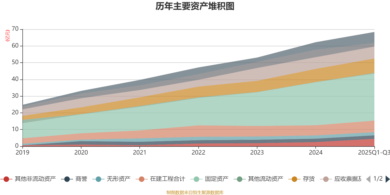 资产重大变化方面,截至2025年三季度末,公司货币资金较上年末减少52.34%,占公司总资产比重下降4.1个百分点;其他非流动资产较上年末增加79.35%,占公司总资产比重上升2.52个百分点;长期股权投资占公司总资产的1.44%,上年末为0;交易性金融资产合计较上年末减少46.15%,占公司总资产比重下降1.07个百分点。