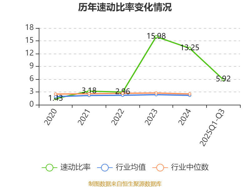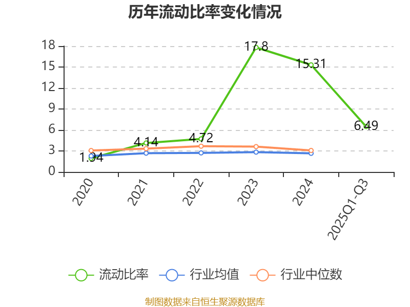 2025年前三季度,公司流动比率为6.49,速动比率为5.92。