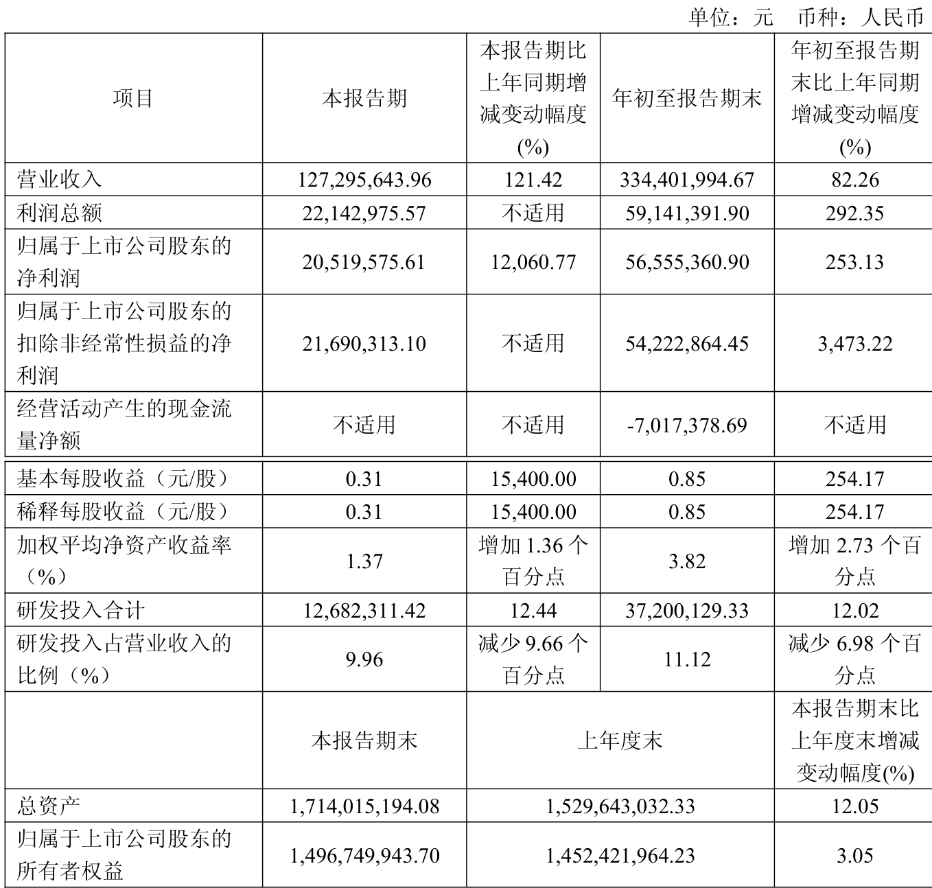 中证智能财讯埃科光电(688610)10月31日披露2025年第三季度报告。前三季度公司实现营业总收入3.34亿元,同比增长82.26%;归母净利润5655.54万元,同比增长253.13%;扣非净利润5422.29万元,同比增长3473.22%;经营活动产生的现金流量净额为-701.74万元,上年同期为-95.49万元;报告期内,埃科光电基本每股收益为0.85元,加权平均净资产收益率为3.82%。