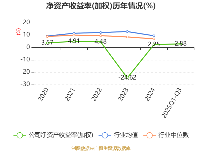 盈利能力方面, 2025年前三季度公司加权平均净资产收益率为2.88%,同比下降2.05个百分点。公司2025年前三季度投入资本回报率为2.4%,较上年同期下降1.11个百分点。