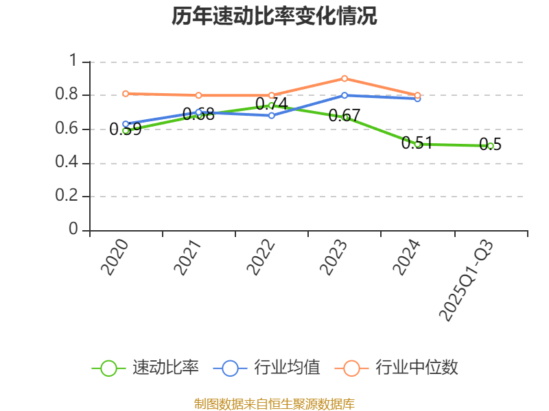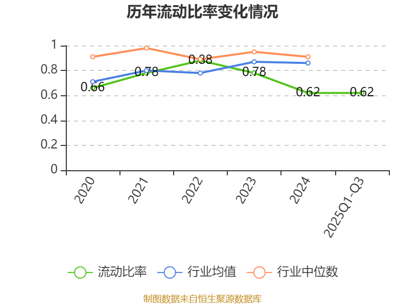 2025年前三季度,公司流动比率为0.62,速动比率为0.5。