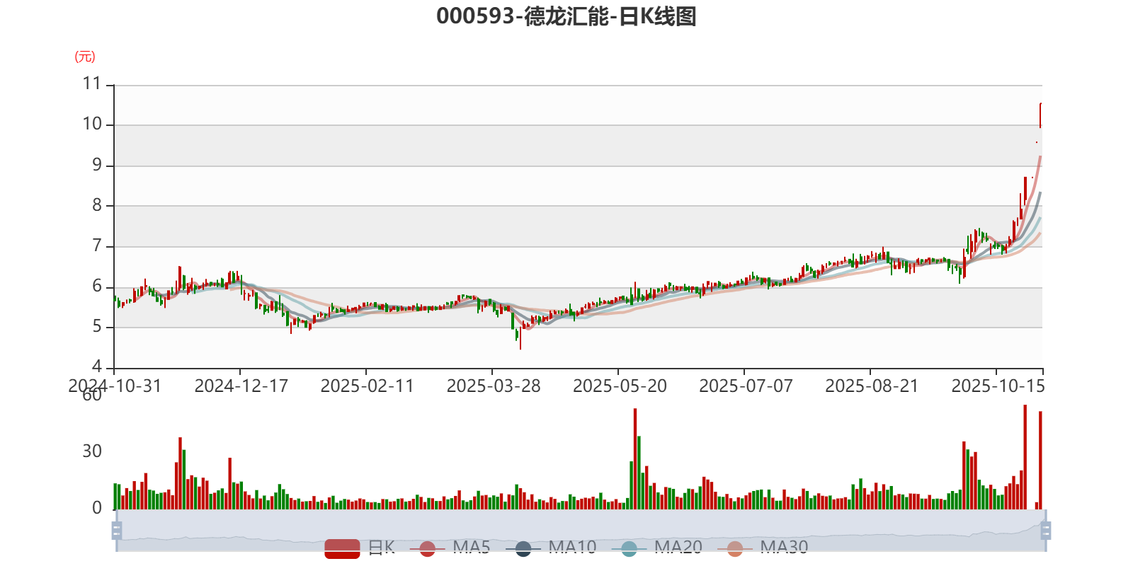 以10月30日收盘价计算,德龙汇能目前市盈率(TTM)约为2538.71倍,市净率(LF)约4.32倍,市销率(TTM)约2.15倍。