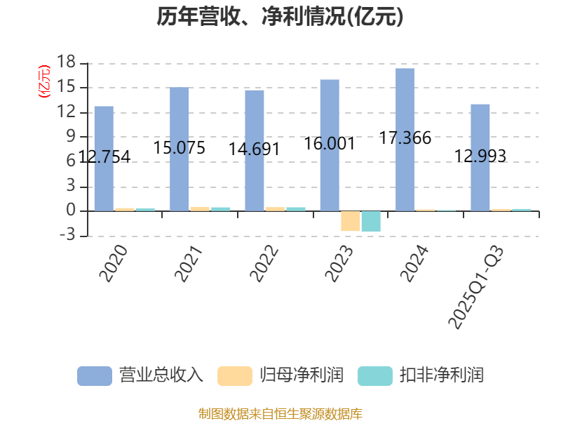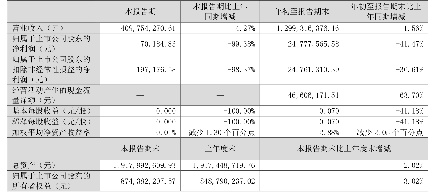 中证智能财讯德龙汇能(000593)10月31日披露2025年第三季度报告。前三季度公司实现营业总收入12.99亿元,同比增长1.56%;归母净利润2477.76万元,同比下降41.47%;扣非净利润2476.13万元,同比下降36.61%;经营活动产生的现金流量净额为4660.62万元,同比下降63.70%;报告期内,德龙汇能基本每股收益为0.07元,加权平均净资产收益率为2.88%。