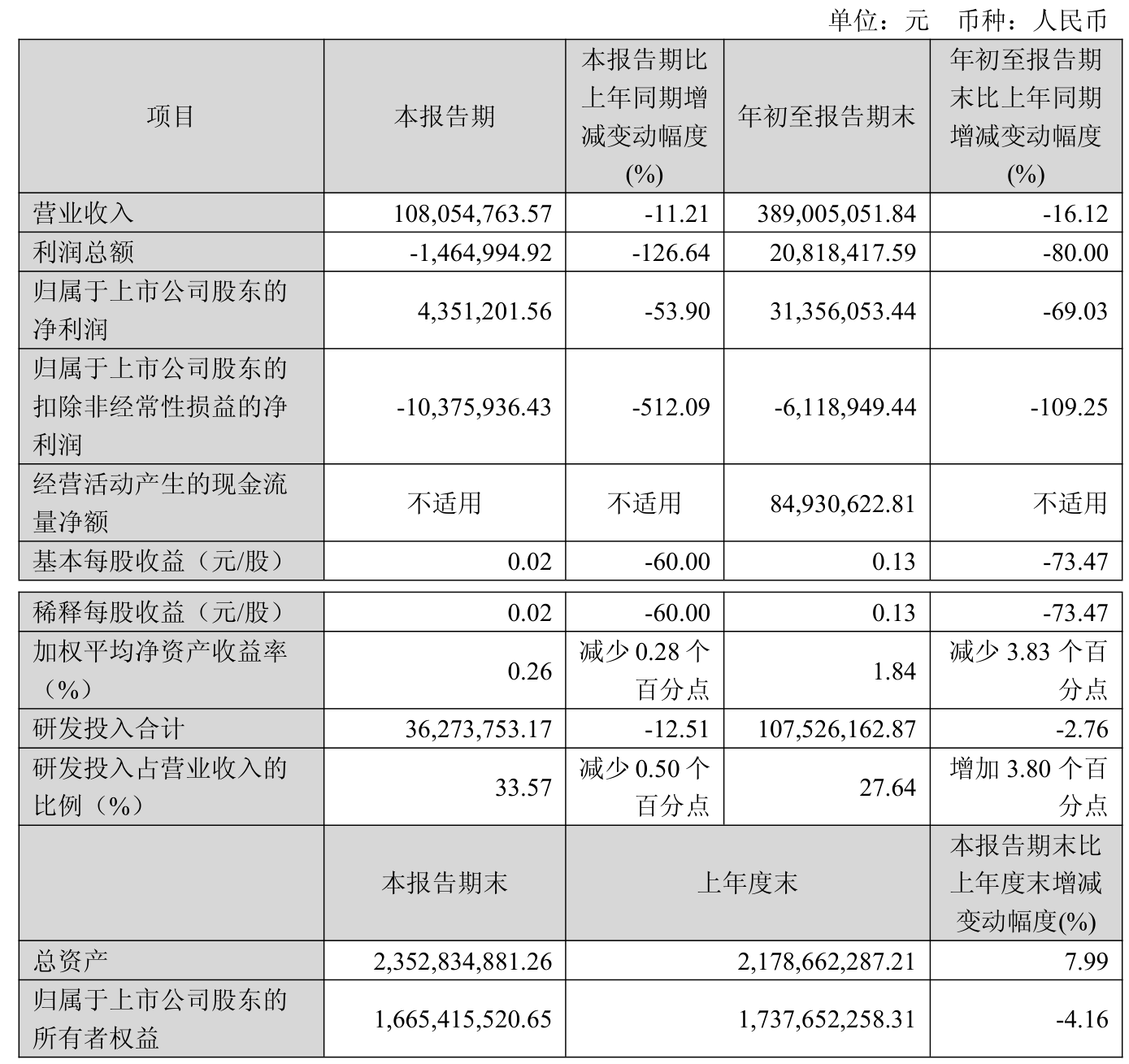中证智能财讯奥来德(688378)10月31日披露2025年第三季度报告。前三季度公司实现营业总收入3.89亿元,同比下降16.12%;归母净利润3135.61万元,同比下降69.03%;扣非净利润亏损611.89万元,上年同期盈利6614.39万元;经营活动产生的现金流量净额为8493.06万元,上年同期为-2712.02万元;报告期内,奥来德基本每股收益为0.13元,加权平均净资产收益率为1.84%。