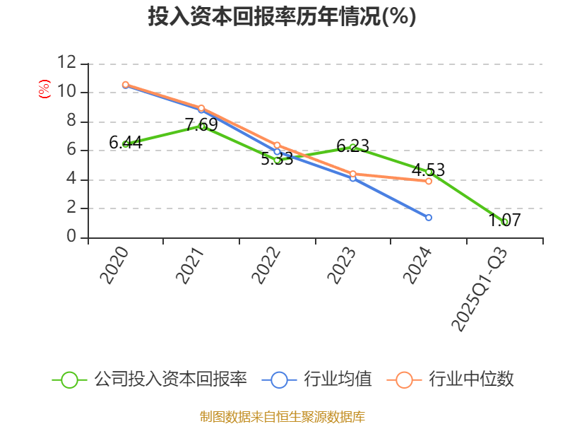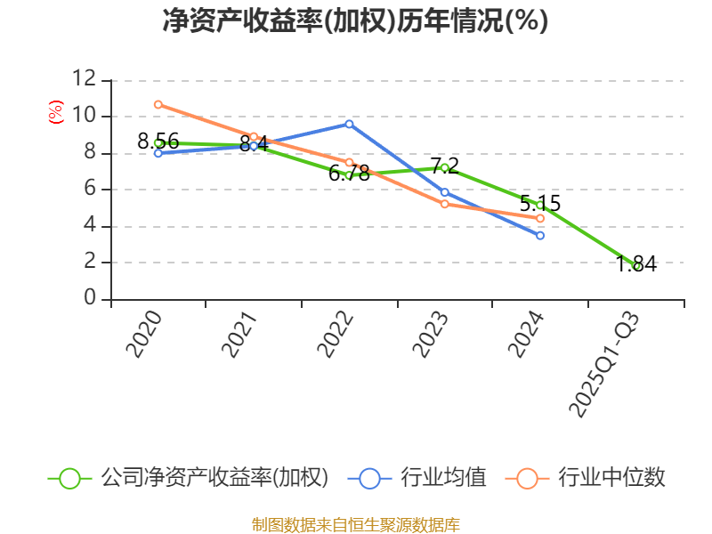 盈利能力方面, 2025年前三季度公司加权平均净资产收益率为1.84%,同比下降3.83个百分点。公司2025年前三季度投入资本回报率为1.07%,较上年同期下降4.22个百分点。