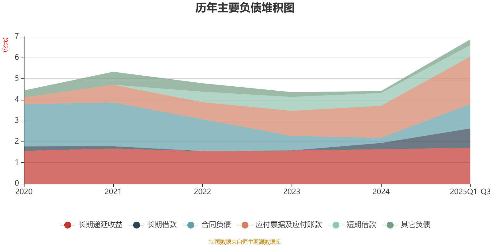 负债重大变化方面,截至2025年三季度末,公司合同负债较上年末增加379.5%,占公司总资产比重上升3.83个百分点;应付票据及应付账款较上年末增加48.31%,占公司总资产比重上升2.62个百分点;长期借款较上年末增加204.28%,占公司总资产比重上升2.5个百分点;其他流动负债较上年末增加65124.57%,占公司总资产比重上升0.6个百分点。