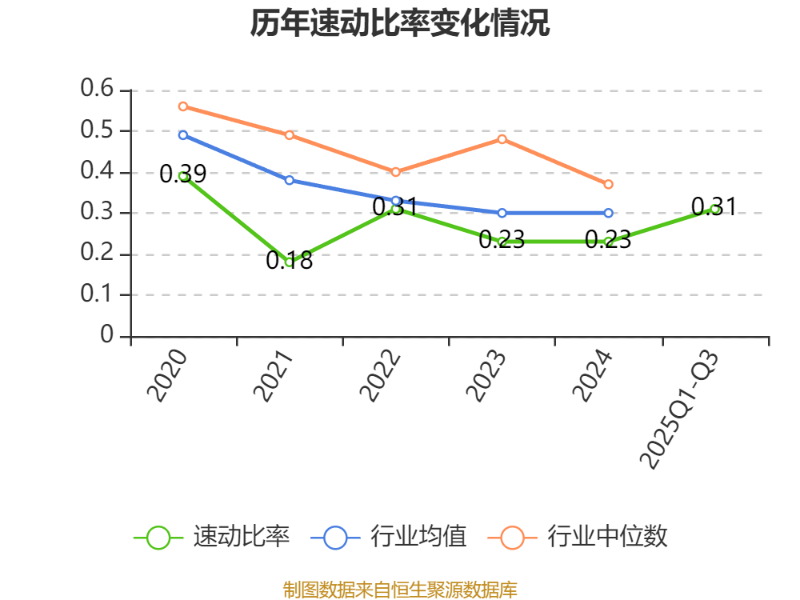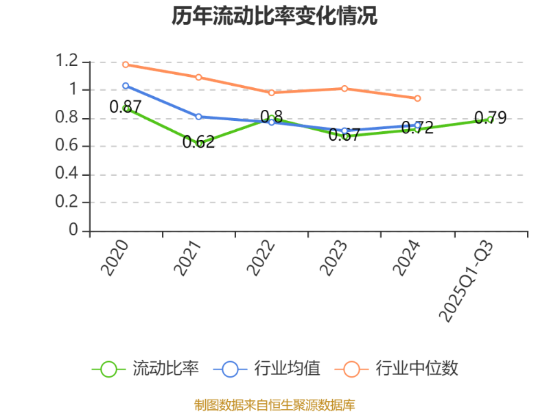 2025年前三季度,公司流动比率为0.79,速动比率为0.31。