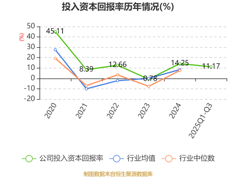 盈利能力方面, 2025年前三季度公司加权平均净资产收益率为19.26%,同比上升3.9个百分点。公司2025年前三季度投入资本回报率为11.17%,较上年同期上升2.43个百分点。