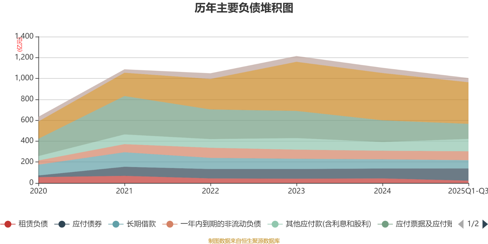 负债重大变化方面,截至2025年三季度末,公司应付票据及应付账款较上年末减少30.48%,占公司总资产比重下降3.07个百分点;短期借款较上年末减少12.15%,占公司总资产比重下降2.12个百分点;其他应付款(含利息和股利)较上年末增加41.84%,占公司总资产比重上升2.1个百分点;应付债券较上年末增加22.95%,占公司总资产比重上升1.39个百分点。
