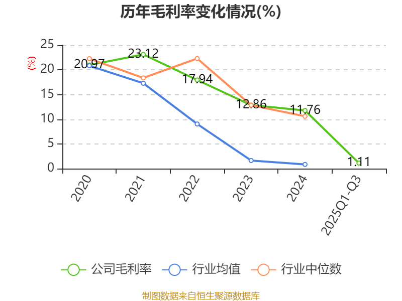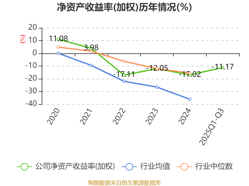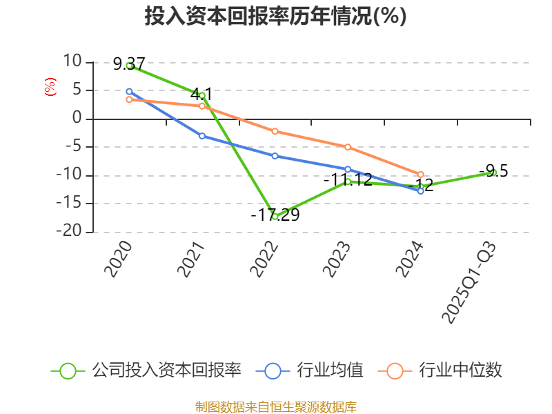 盈利能力方面, 2025年前三季度公司加权平均净资产收益率为-11.17%,同比下降5.67个百分点。公司2025年前三季度投入资本回报率为-9.5%,较上年同期下降5.06个百分点。