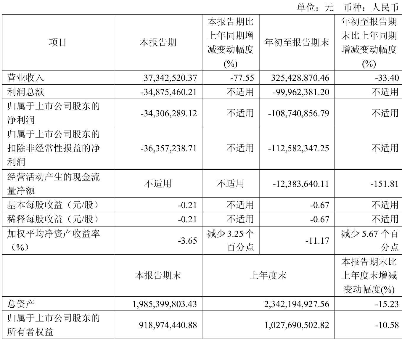 中证智能财讯园林股份(605303)10月31日披露2025年第三季度报告。前三季度公司实现营业总收入3.25亿元,同比下降33.40%;归母净利润亏损1.09亿元,上年同期亏损6550.95万元;扣非净利润亏损1.13亿元,上年同期亏损7525.11万元;经营活动产生的现金流量净额为-1238.36万元,上年同期为2390.42万元;报告期内,园林股份基本每股收益为-0.67元,加权平均净资产收益率为-11.17%。