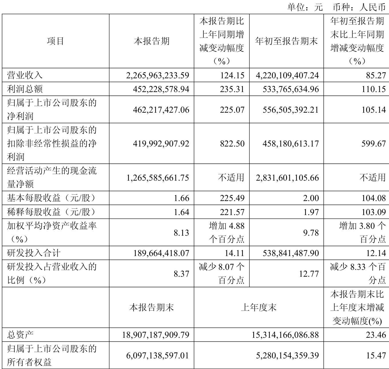 中证智能财讯拓荆科技(688072)10月31日披露2025年第三季度报告。前三季度公司实现营业总收入42.2亿元,同比增长85.27%;归母净利润5.57亿元,同比增长105.14%;扣非净利润4.58亿元,同比增长599.67%;经营活动产生的现金流量净额为28.32亿元,上年同期为-9.99亿元;报告期内,拓荆科技基本每股收益为2.00元,加权平均净资产收益率为9.78%。