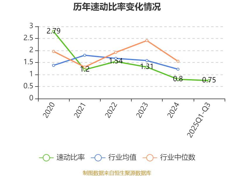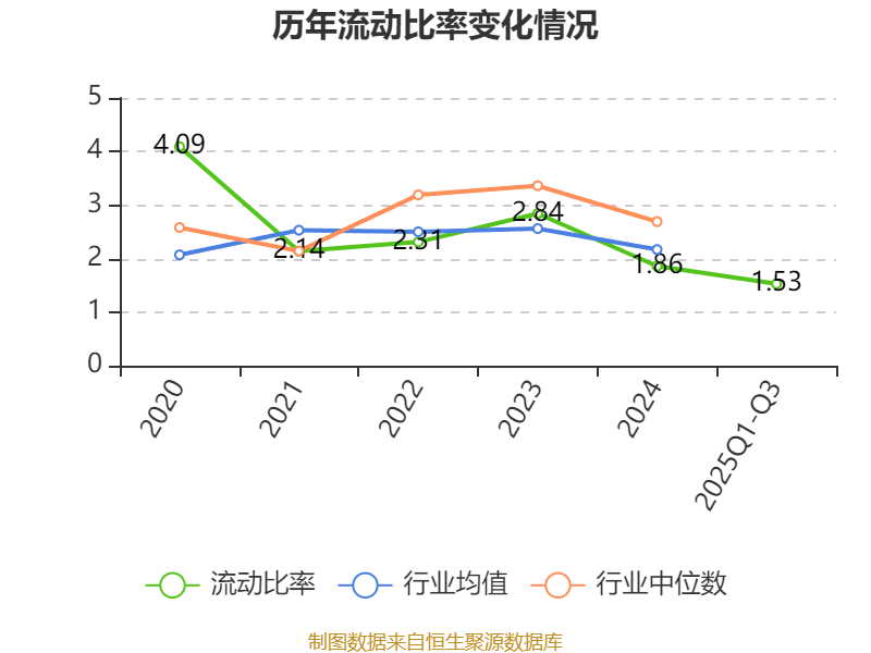 2025年前三季度,公司流动比率为1.53,速动比率为0.75。