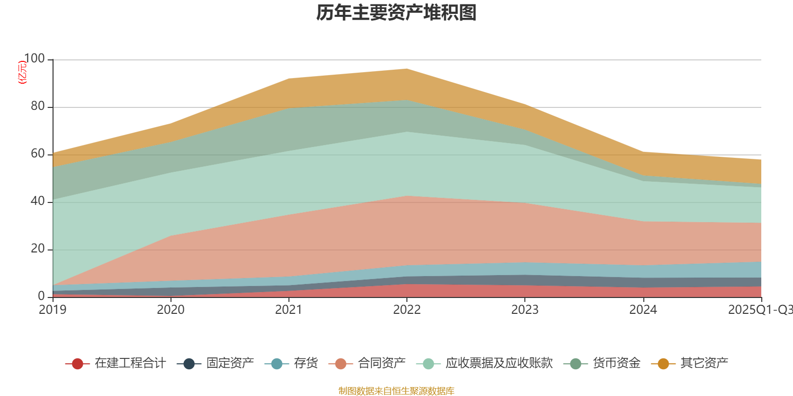 资产重大变化方面,截至2025年三季度末,公司存货较上年末增加27.3%,占公司总资产比重上升2.97个百分点;合同资产较上年末减少11.59%,占公司总资产比重下降1.98个百分点;应收票据及应收账款较上年末减少12.17%,占公司总资产比重下降1.98个百分点;货币资金较上年末减少36.25%,占公司总资产比重下降1.26个百分点。