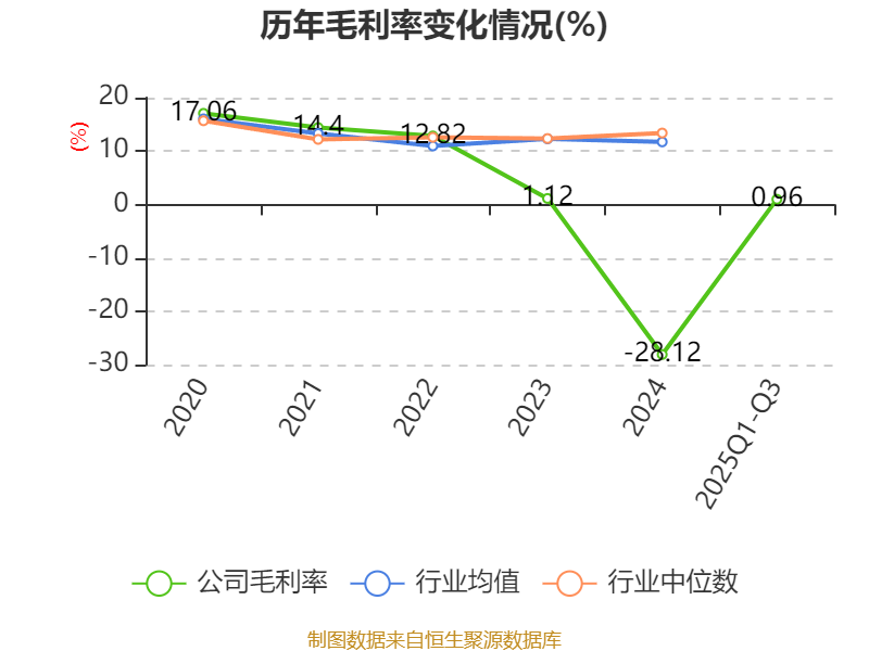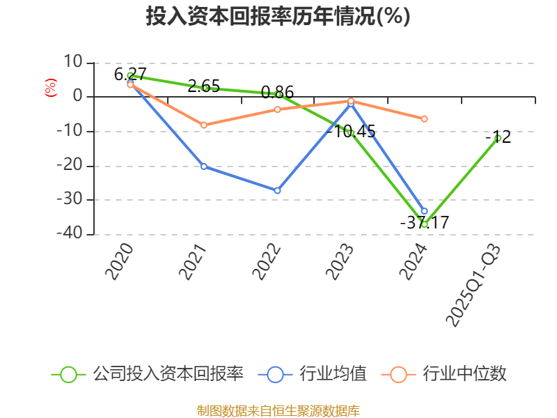 盈利能力方面, 2025年前三季度公司加权平均净资产收益率为-58.4%,同比下降25.5个百分点。公司2025年前三季度投入资本回报率为-12%,较上年同期上升1.7个百分点。