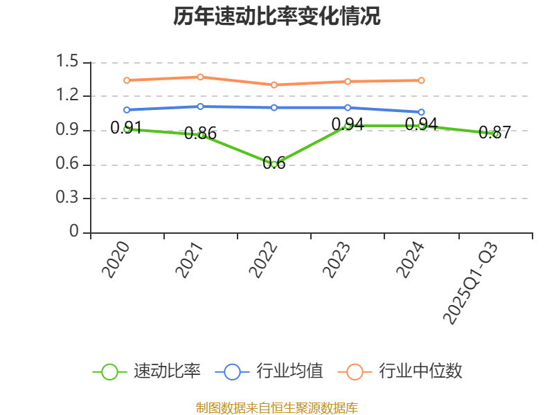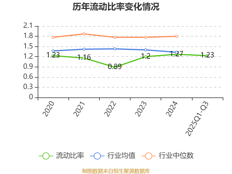 2025年前三季度,公司流动比率为1.23,速动比率为0.87。