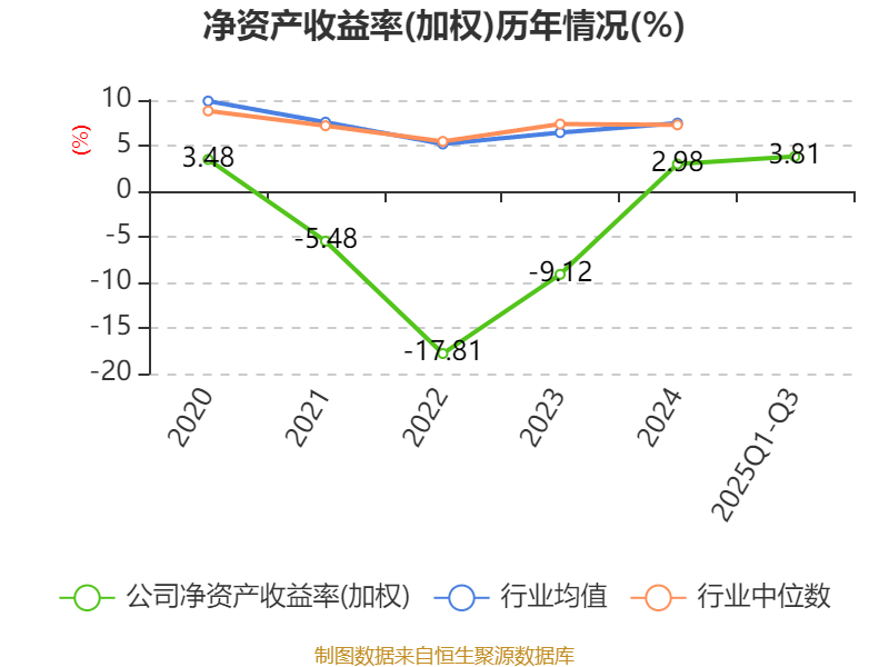 盈利能力方面, 2025年前三季度公司加权平均净资产收益率为3.81%,同比上升1.46个百分点。公司2025年前三季度投入资本回报率为2.7%,较上年同期上升1.15个百分点。